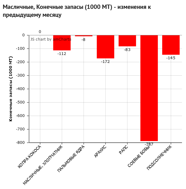 Мировое производство масличных культур в 2020/21 году выросло на 1 млн тонн в основном за счет пересмотра урожая сои в Бразилии в 2021 году. Мировая торговля масличными культурами в целом мало изменилась. Прирост почти по всем масличным культурам привел к росту глобальной переработке на 1 миллион. На соевые бобы приходится почти половина прироста, в основном за счет восстановления после сентябрьского падения в Аргентине после 2 месяцев низких показателей. Мировые запасы масличных культур выросли, так как более высокие запасы сои в Бразилии и Китае более чем компенсируют более низкие запасы сои в Аргентине (в результате более высокой переработки).
