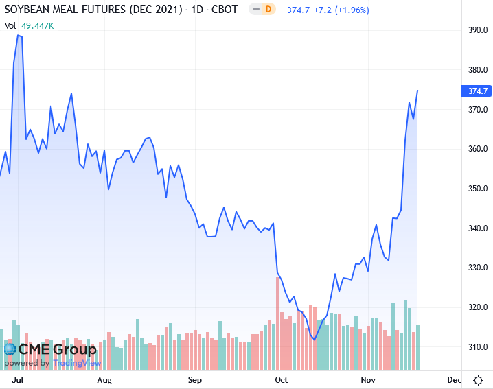 Фьючерсы на сою на Чикагской товарной бирже в среду выросли на 2,1%, достигнув максимума с 30 сентября благодаря росту как на внутреннем, так и на экспортном рынках, сообщили трейдеры. Фьючерсы на соевый шрот также укрепились на 2% на фоне ожиданий роста спроса со стороны производителей свинины и достигли пятимесячного максимума. Торговля фьючерсами на соевое масло также завершились в плюсе. Январский фьючерсный контракт на сою на CBOT поднялся выше 50-дневной скользящей средней. Он также превысил верхнюю границу своего 20-дневного диапазона Боллинджера впервые с 9 июня, но не смог удержать поддержку выше этой ключевой технической точки сообщает oilworld.ru со ссылкой на Рейтер.