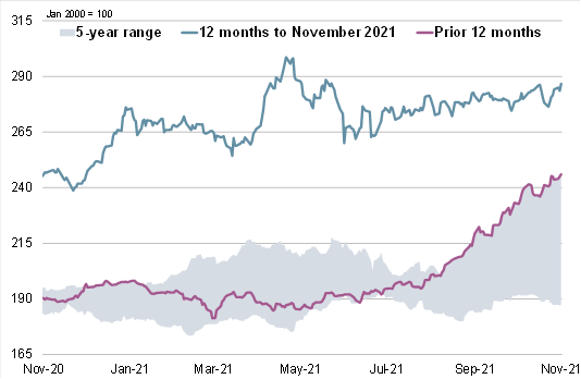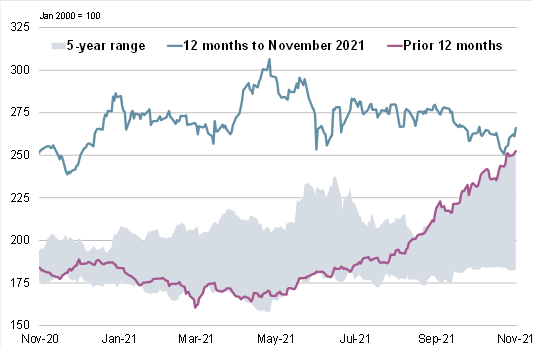Индекс потребительских цен IGC немного укрепился за последний месяц, так как рост экспортных цен на пшеницу, кукурузу и ячмень компенсировал снижение цен на соевые бобы и рис.