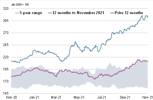 Подкрепленный нехваткой предложения у основных экспортеров, субиндекс пшеницы IGC GOI вырос на 5 %, достигнув самого высокого уровня за более чем 10 лет.