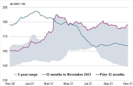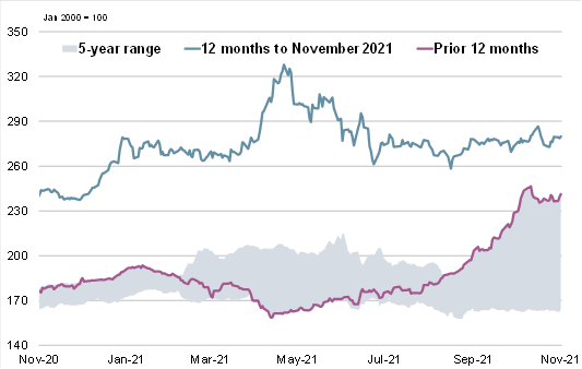 Прогноз Совета по мировой торговле рисом в 2021 году несколько выше, м/м, на уровне 48,3 млн тонн (44,0 млн тонн), что обусловлено более высоким, чем ожидалось, спросом со стороны покупателей в Азии. В то время как мировое производство 2021/22 прогнозируется с незначительными изменениями в м/м, на пике в 513 млн т (+1% г/г), запасы на конец сезона увеличены с прежнего уровня до 184 млн (+3 млн г/г), при пересмотре в сторону повышения для Индии. Прогноз мирового спроса на импорт в 2022 году сохраняется и будет стабильным в годовом исчислении.