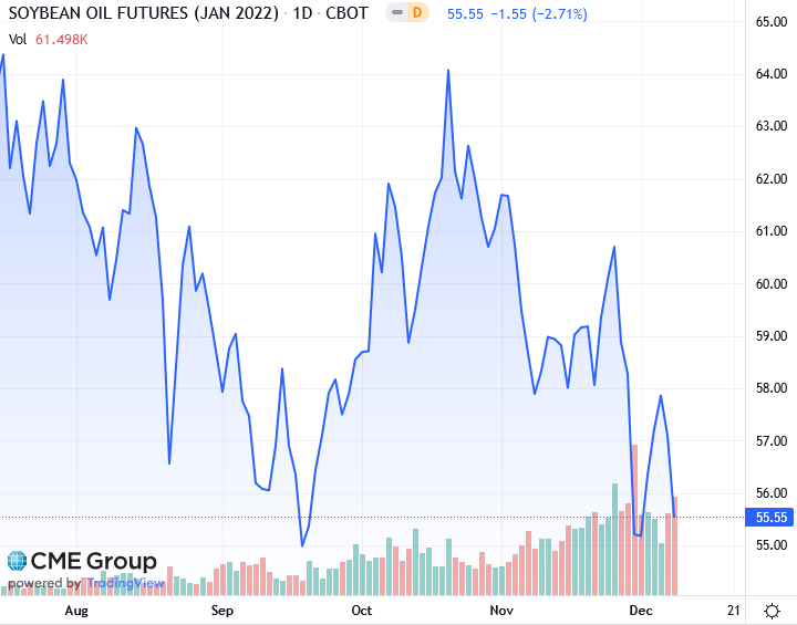 Фьючерсы на сою на Чикагской товарной бирже выросли в среду, поскольку новая экспортная сделка с Китаем вытащила рынок из минимумов. Министерство сельского хозяйства США сообщило что частные экспортеры продали 130000 тонн сои в Китай с поставкой в 2021/22 маркетинговом году. В свою очередь таможенное управление Китая сообщило что импорт сои в Китай вырос в ноябре из-за прибытия новых грузов из США. Всего Китай импортировал 8,57 миллиона тонн сои в ноябре, что на 68% больше по сравнению с 5,11 миллиона тонн в октябре, но меньше, чем 9,59 миллиона тонн за тот же период прошлого года. Ожидается, что в течение всего маркетингового года импорт соевых бобов из Китая в США сократится по сравнению с предыдущим годом. Данные показывают, что за первые 11 месяцев этого года Китай импортировал 87,65 миллиона тонн сои, что на 5,5% меньше, чем за тот же период прошлого года сообщает oilworld.ru.