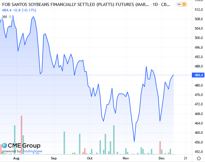 USDA оставило свои прогнозы по конечным запасам сои в США без изменений на уровне 9251 тыс. тонн. Аналитики в среднем ожидали больших запасов сои сообщает Рейтер. Данные USDA, по сое были в основном нейтральные считают трейдеры. Ближайшие фьючерсы на соевое масло достигли недельного минимума. В CONAB в четверг оценили новый урожай сои в Бразилии в 2021/22 году на уровне 142,789 тыс. тонн по сравнению с предыдущей оценкой в 142,009 тыс. тонн и 137,321 тыс. тонн в сезоне 2020/21 года сообщает oilworld.ru.
