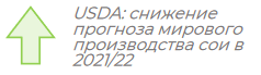 USDA: прогноз мирового производства сои на 2021/22 в декабрьском отчете снижен на 2,3 ММТ по сравнению с ноябрем - до уровня 381,2 ММТ. Производство уменьшено за счет снижения оценок валового сбора в Китае (-2,6 ММТ – до 16,4 ММТ) и Парагвае (-0,5 ММТ – до 10,0 ММТ) на фоне более низкой, чем ожидалось ранее, урожайности бобов.