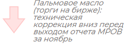 Пальмовое масло в Куала-Лумпуре снизилось на 3$/МТ до 1236$/МТ из-за технических продаж в преддверии пятничного отчета MPOB. Также на цены оказывала давление информация сюрвейеров о том, что экспорт из Малайзии в период с 1 по 10 декабря снизился на 10,35% по сравнению с предыдущим месяцем.