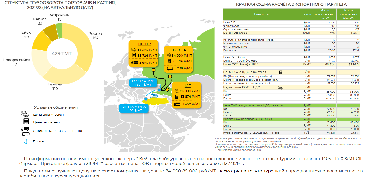 USDA повысил мировое производство подсолнечного масла в 2021/22 на 0,2 ММТ к ноябрю – до 22,0 ММТ. Оценка увеличена для Украины (7,3 ММТ) и РФ (5,8 ММТ) в связи с увеличением прогноза урожайности и валового сбора подсолнечника (+500 ТМТ к прошлой оценке по каждой из стран).