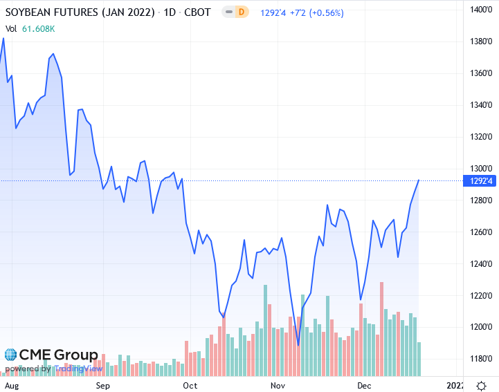 В понедельник, на торгах в Чикаго соевые бобы, выросли на фоне новостей о сухой и теплой погоде в Южной Америке. Соевое масло снизилось из-за снижения цен на энергоносители и опасений, что распространение вируса Омикрон может снизить спрос на продукты питания и топливо.