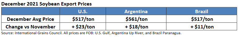 Декабрьские цены на соевые бобы в США выросли из-за неблагоприятной погоды в Южной Америке. Однако более медленные темпы экспорта из Соединенных Штатов способствовали росту цен.