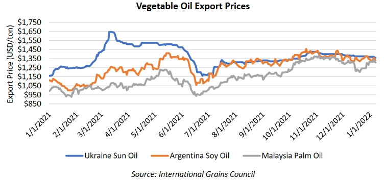 Обзор USDA январь 2022. Основные моменты. Спред между пальмовым маслом и другими маслами испаряется по мере роста цен