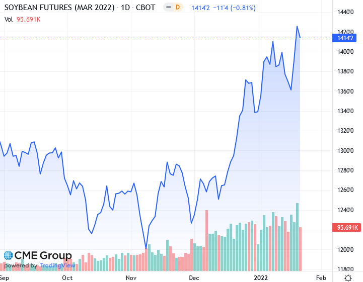 Министерство сельского хозяйства США сообщило о продаже 132 000 тонн соевых бобов в Китай с поставкой в 2021/22 маркетинговом году. За неделю закончившуюся 13 января, экспортные продажи сои составили 1,199 млн тонн. Аналитики ожидали экспортных продаж в диапазоне от 700 000 до 1,5 млн тонн сообщает Рейтер.