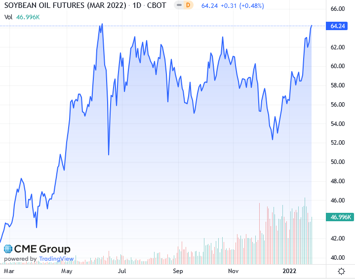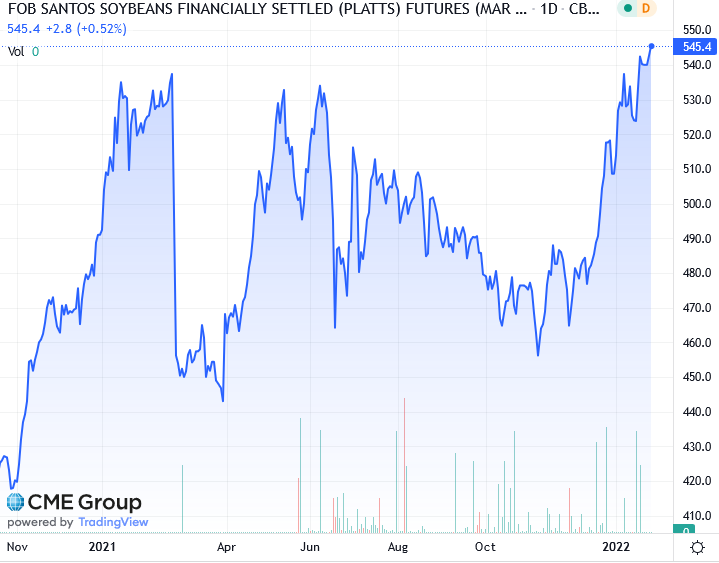 Доллар вырос до самого высокого уровня с июля 2020 года по отношению к другим основным валютам в четверг, что сделало товары, номинированные в долларах, более дорогими для покупателей по всему миру. Министерство сельского хозяйства США сообщило, что чистые экспортные продажи сои в США составили 1,228 млн тонн за неделю, закончившуюся 20 января, что соответствует прогнозам торговли от 750 000 до 1,9 млн тон пишет Рейтер