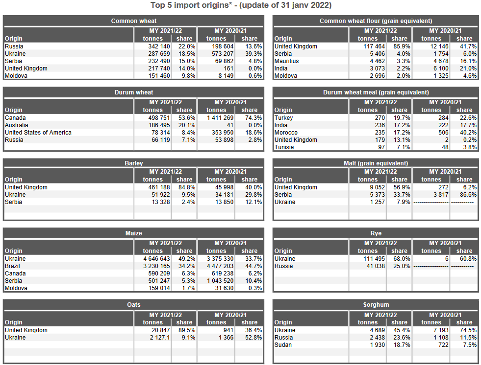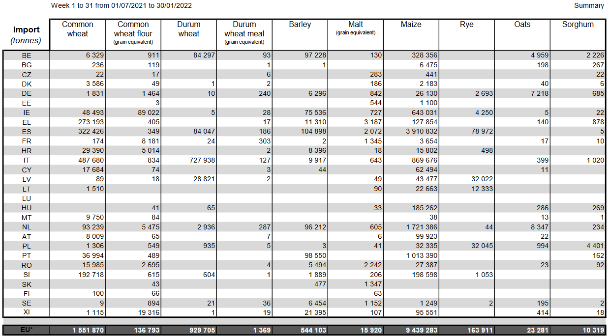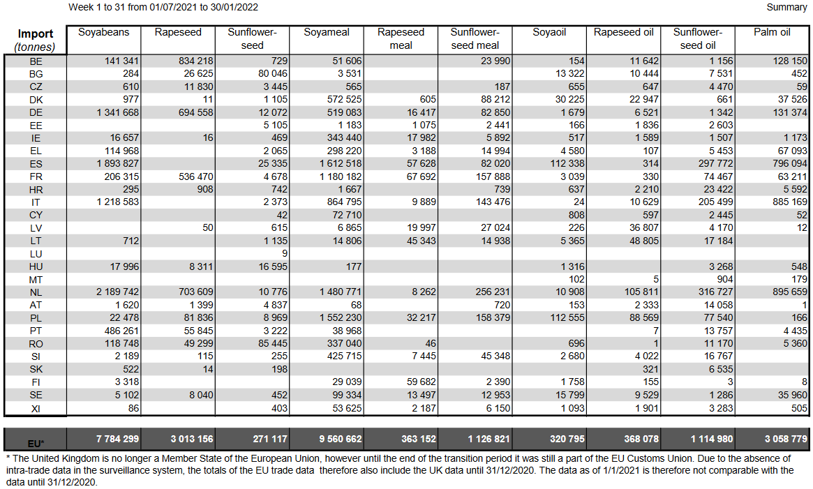 26.01.22 ЕС. Импорт - экспорт зерновых, масличных, растительного масла, шрота. Оперативные данные на 23.01.2022