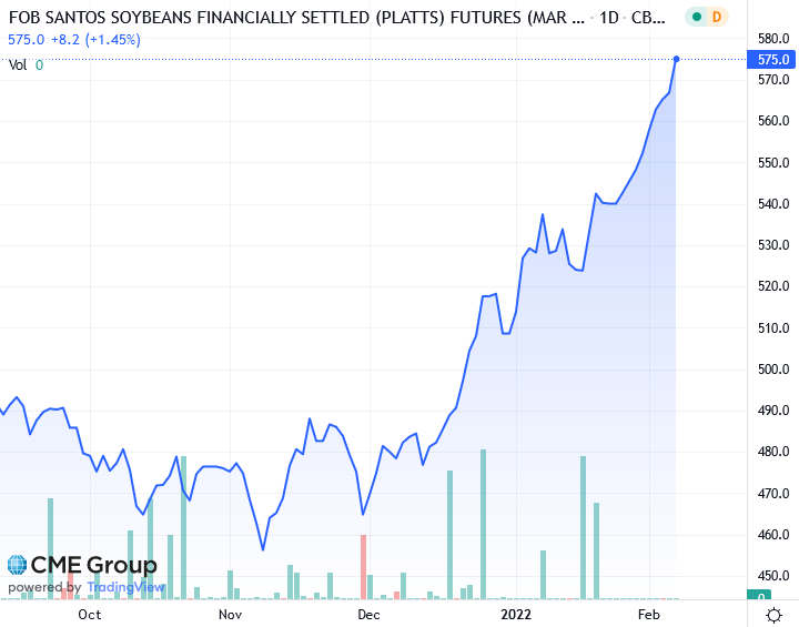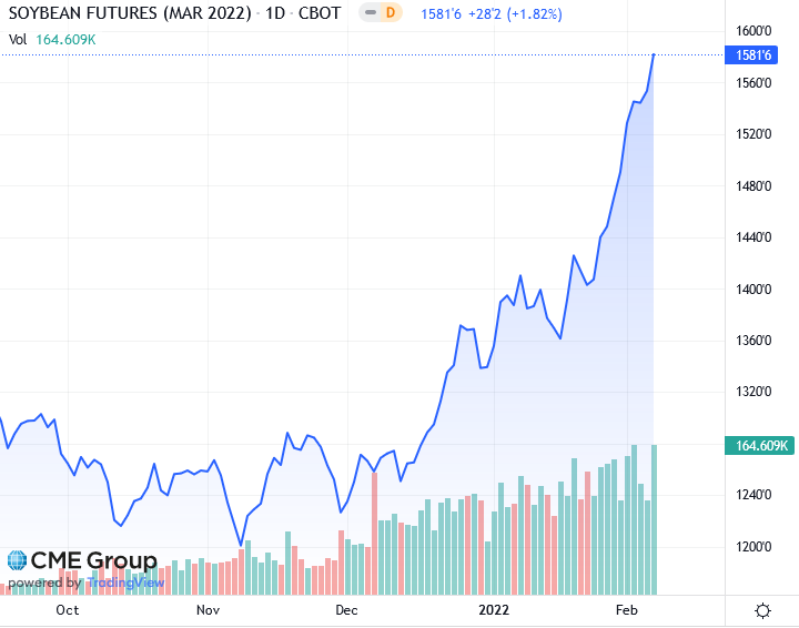 Фьючерсы на сою в Чикаго в понедельник выросли до восьмимесячного максимума на фоне опасений по поводу возможного сокращения поставок из-за непогоды в Южной Америке.