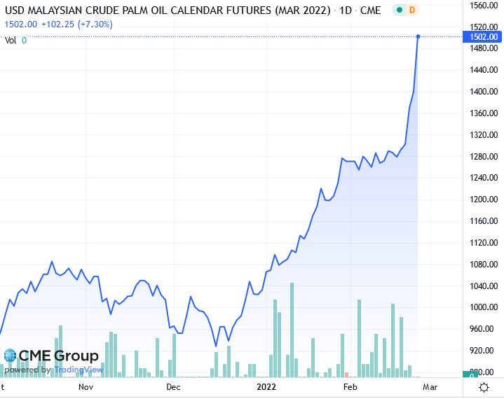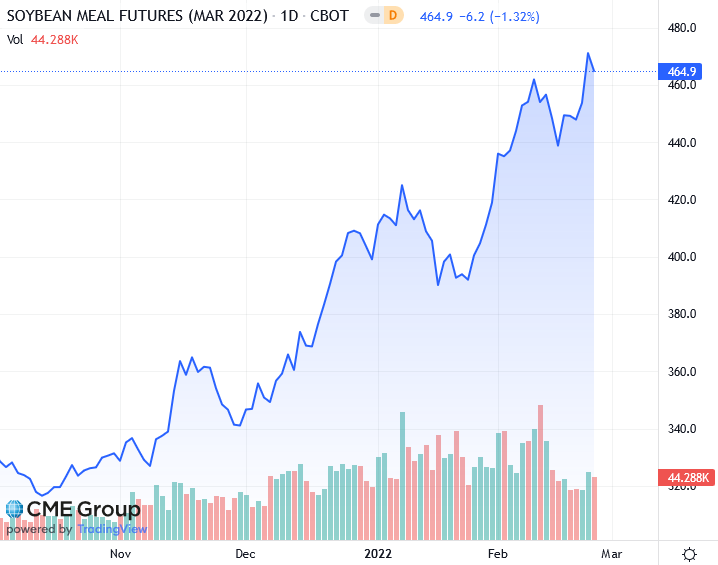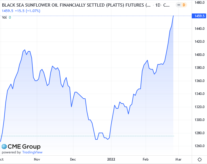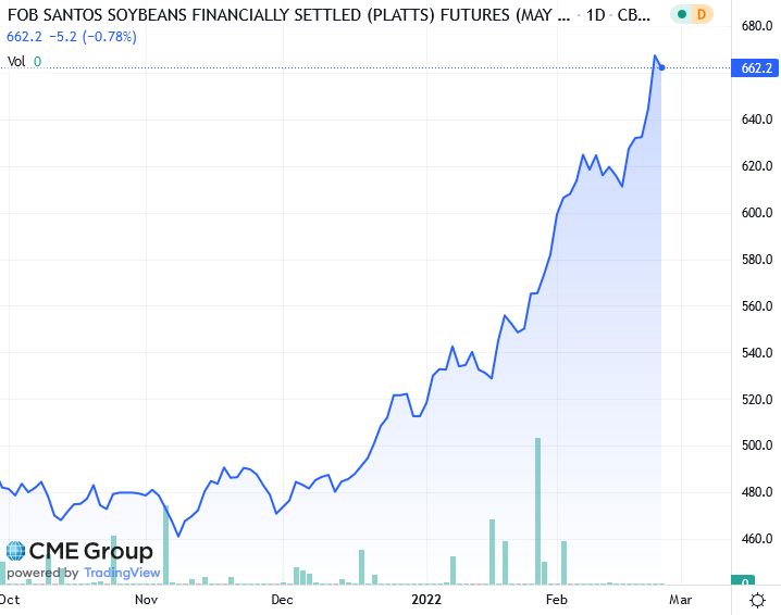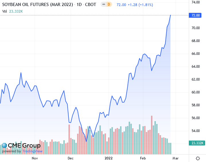 Фьючерсы на соевое масло достигли рекордно высокого уровня из-за опасений по поводу мировых поставок растительного масла на фоне конфликта в крупнейшем регионе производства подсолнечного масла.
