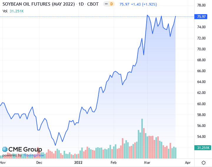 Ралли сырой нефти также оказало поддержку соевому комплексу. CBOT майская кукуруза подорожала на 4-3/4 цента до 7,57-3/4 доллара за бушель, достигнув максимума с 7 марта. CBOT Майская пшеница потеряла 12-1/2 цента и закрылась на уровне 11,05-3/4 доллара за бушель. Трейдеры все еще ждали признаков того, что американские экспортеры выигрывают часть сделок с пшеницей, которые обычно идут в Россию или Украину.