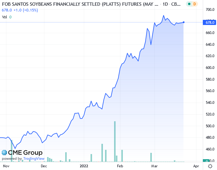 Майские соевые бобы на CBOT подорожали на 22-1/4 цента по $17,18-3/4 за бушель. Цены достигли пика в 17,36-1/2 доллара, что является самым высоким показателем для самого активного контракта с 24 февраля.