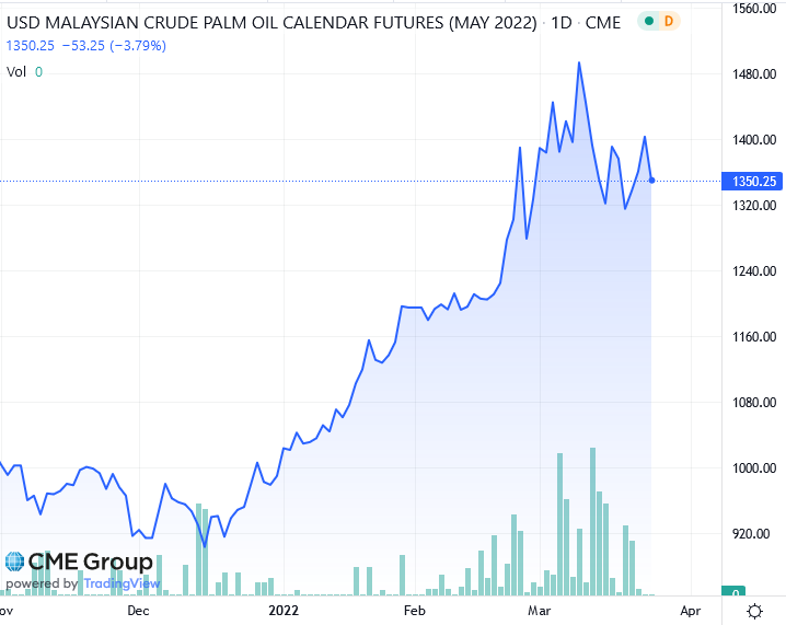 Базовый контракт на пальмовое масло FCPOc3 с поставкой в июне на Малайзийской бирже деривативов Bursa упал на 4,02% до 5 943 ринггитов (1 406,96 долларов США) за тонну к моменту закрытия, что свело на нет примерно 10% роста, достигнутого за последние три сессии сообщает oilworld.ru со ссылкой на Рейтер.