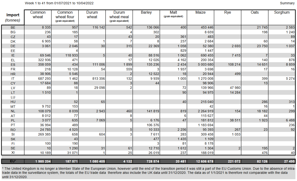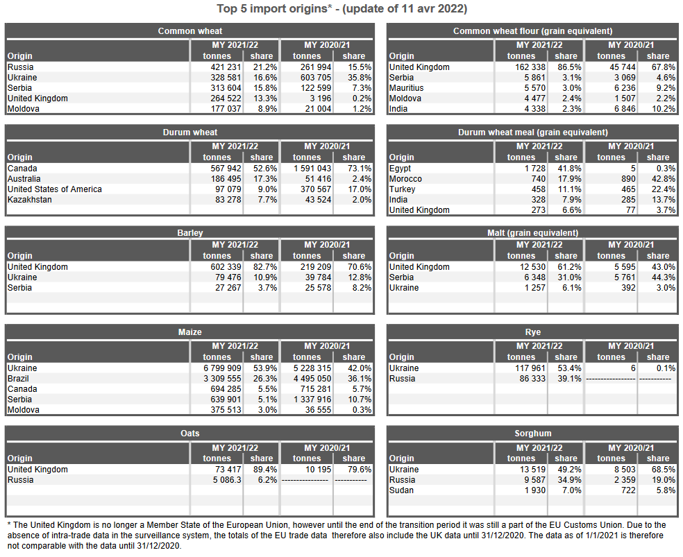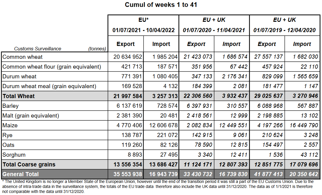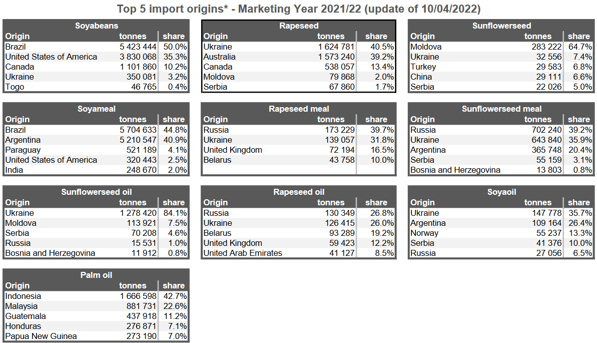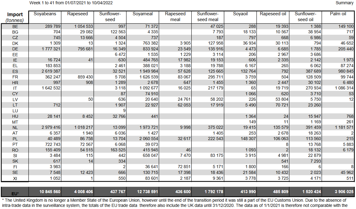 06.04.22 ЕС. Импорт - экспорт зерновых, масличных, растительного масла, шрота. Оперативные данные на 03.04.2022