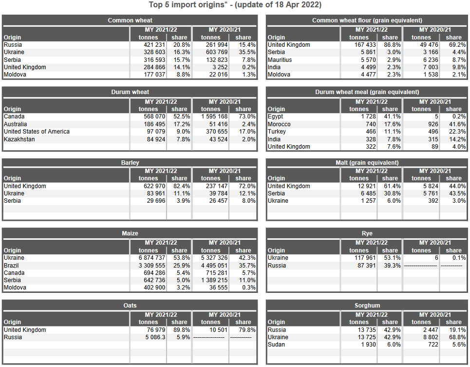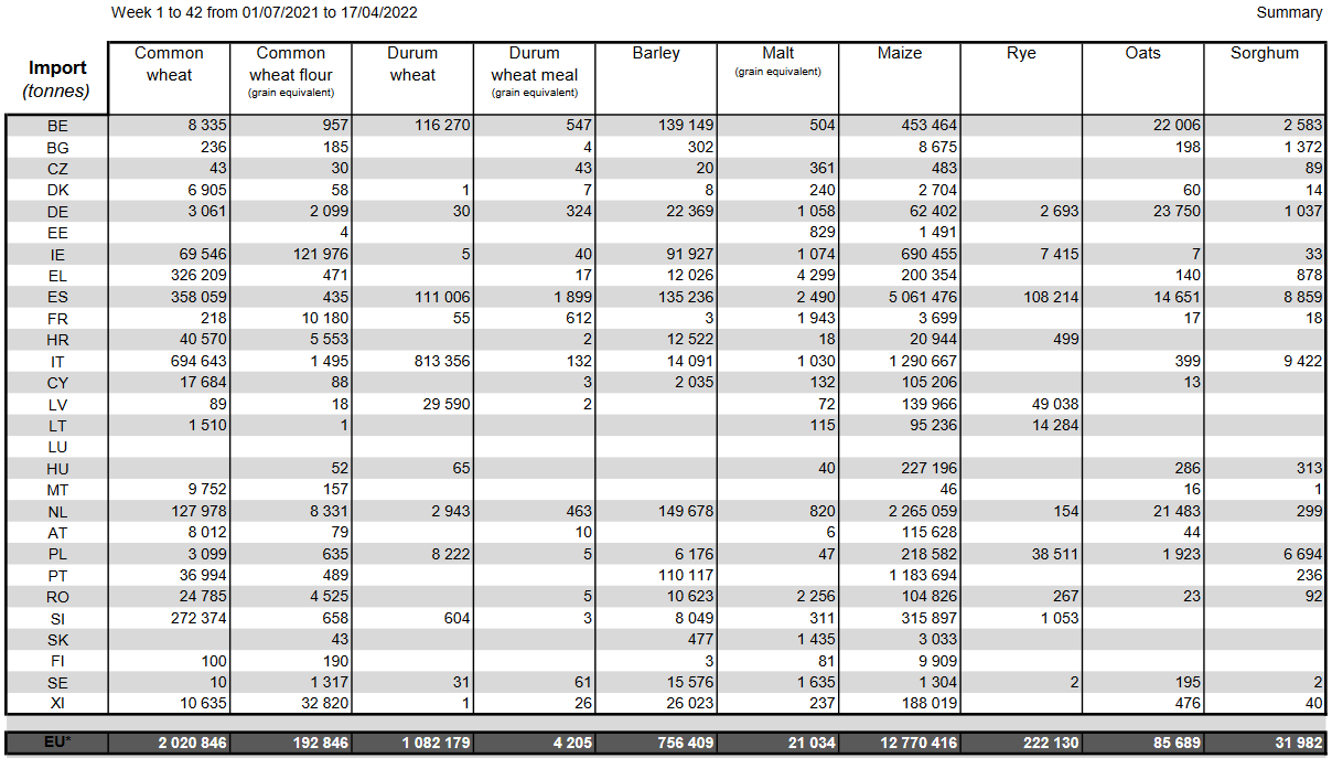 06.04.22 ЕС. Импорт - экспорт зерновых, масличных, растительного масла, шрота. Оперативные данные на 03.04.2022