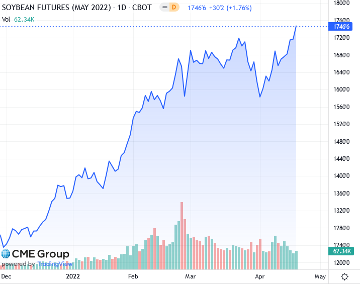 Июльские соевые бобы Чикагской товарной биржи подорожали на 25-1/4 цента по 17,17 доллара за бушель после достижения 17,21-3/4 доллара, самого высокого уровня контракта с 24 февраля сообщает oilworld.ru.