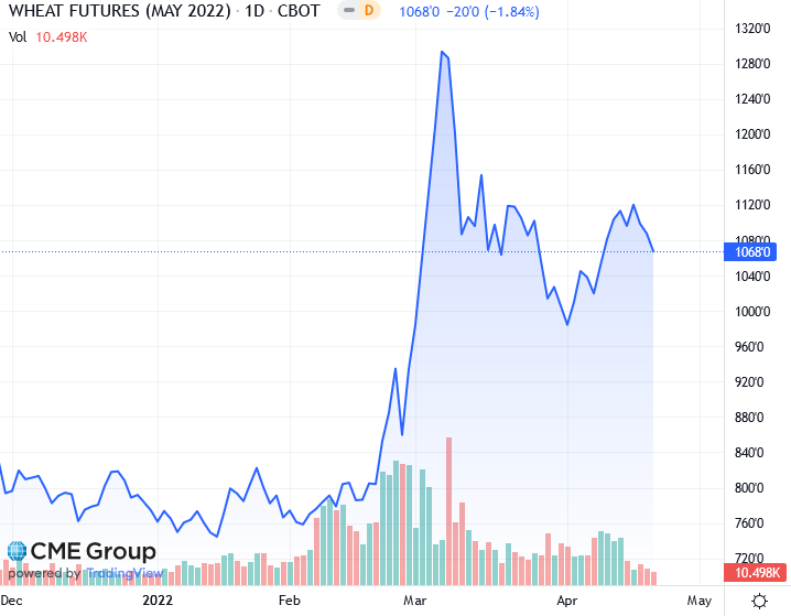 По состоянию на 13:05 CDT (18:05 по Гринвичу) на Чикагской товарной бирже июльская кукуруза подешевела на 11,1/2 цента до 7,98-1/2 доллара за бушель, а июльская пшеница подешевела на 22-3/4 цента до 10,74-3 доллара за бушель