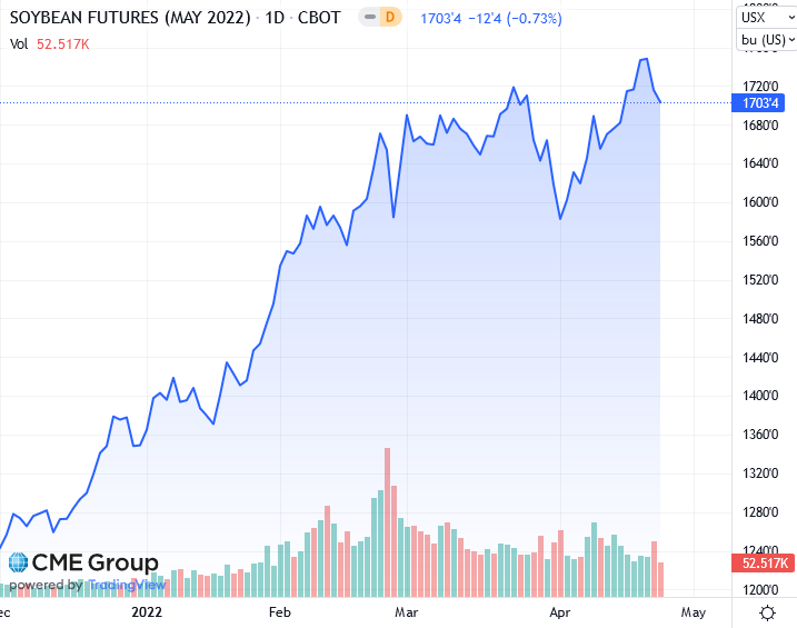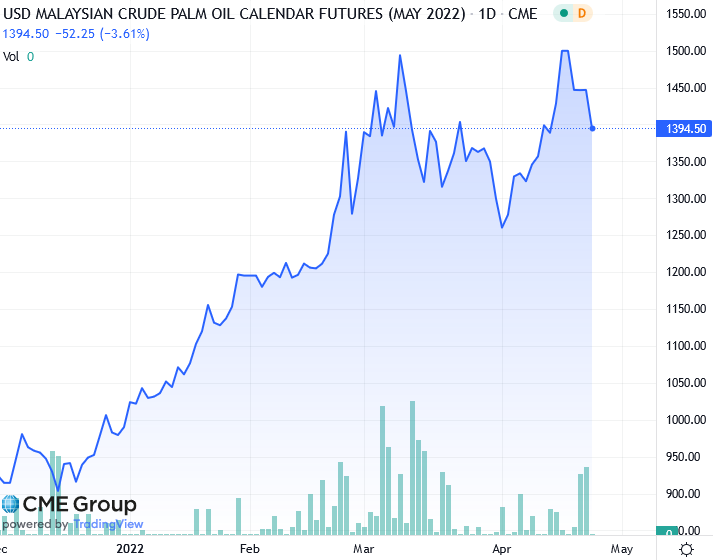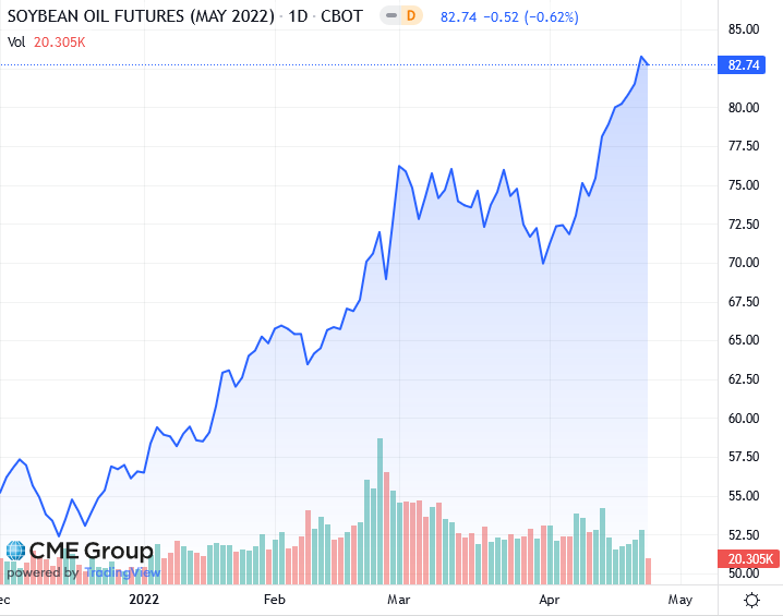 Фьючерсы на соевое масло Чикагской товарной биржи упали в понедельник, отступив от исторического максимума после того, как министерство сельского хозяйства Индонезии заявило, что поставки сырого пальмового масла будут исключены из запланированного запрета на экспорт пальмового масла.