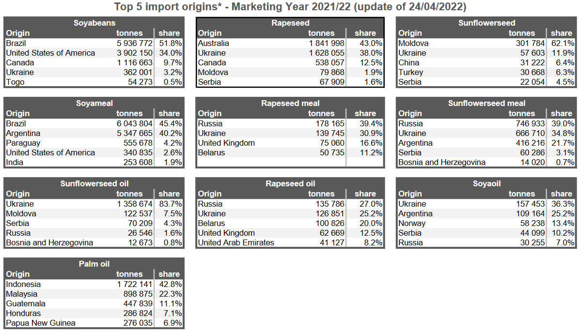13.04.22 ЕС. Импорт - экспорт зерновых, масличных, растительного масла, шрота. Оперативные данные на 10.04.2022