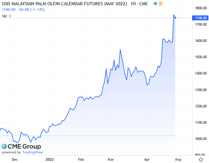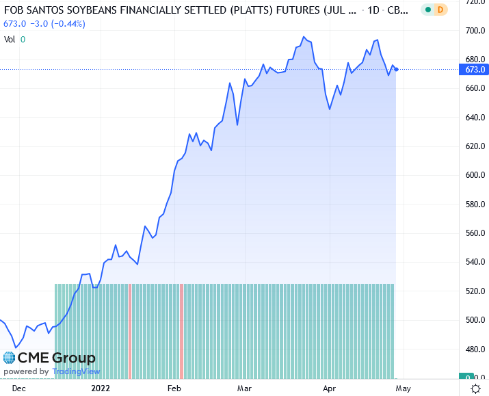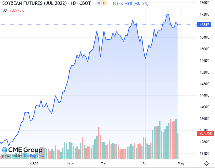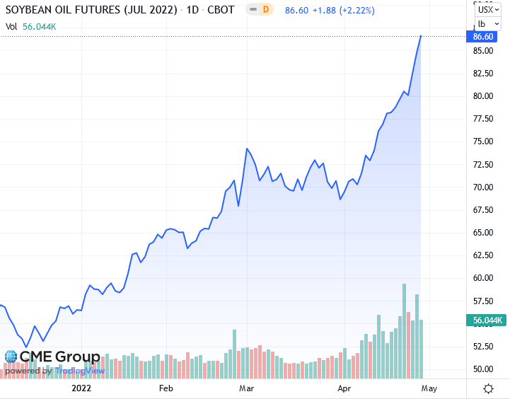 Фьючерсы на соевое масло были сильными, достигнув нового рекордного максимума второй день подряд благодаря поддержке решения Индонезии расширить сферу действия запрета на экспорт пальмового масла, включив в него сырье для растительного масла.