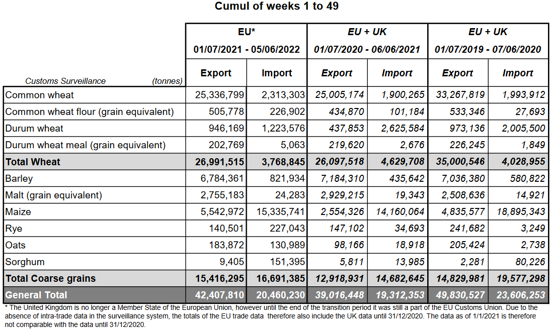 01.06.22 ЕС. Импорт - экспорт зерновых, масличных, растительного масла, шрота. Оперативные данные на 29.05.2022