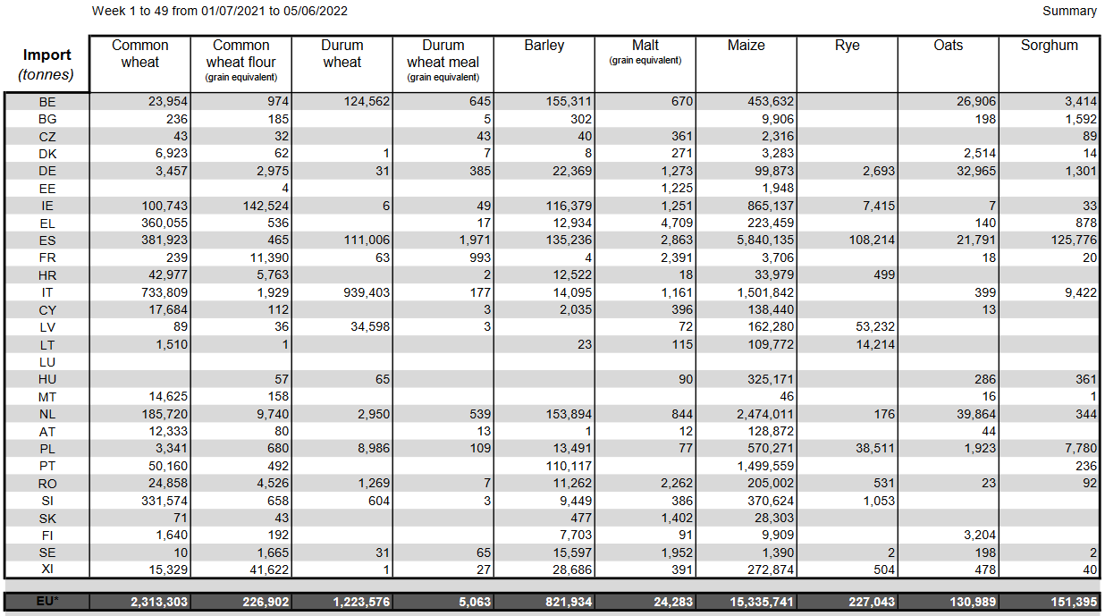 12.05.22 ЕС. Импорт - экспорт зерновых, масличных, растительного масла, шрота. Оперативные данные на 08.05.2022