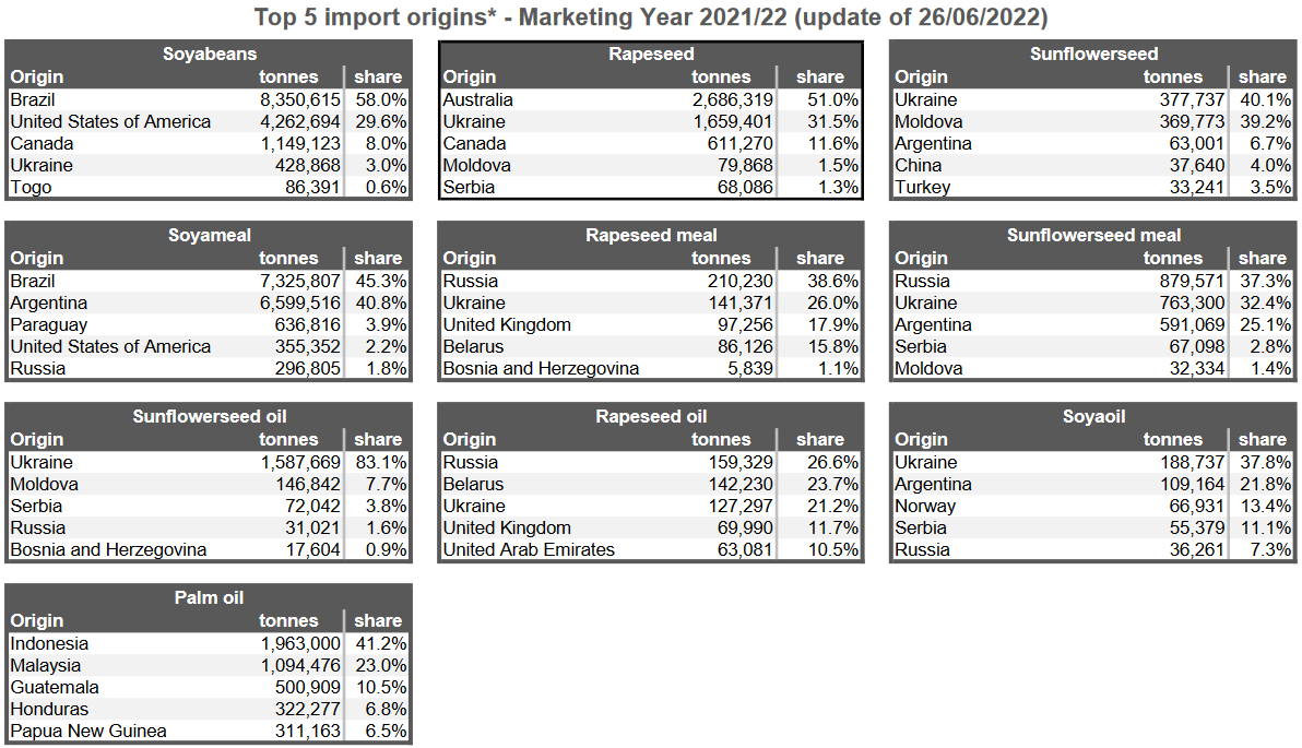 23.06.22 Страны Евросоюза экспортировали 5,4 млн тонн масличных и продуктов переработки с начала сезона