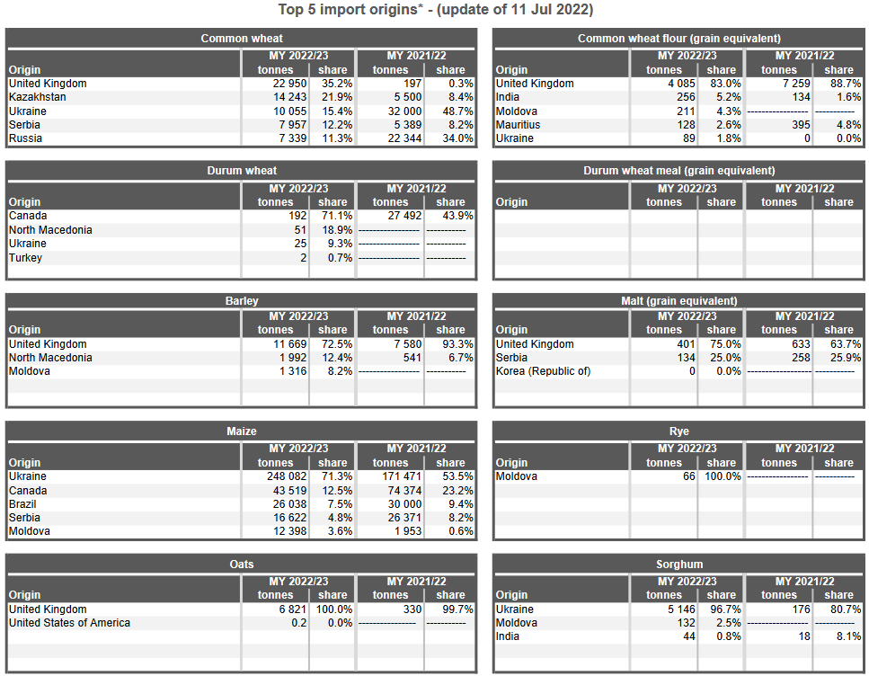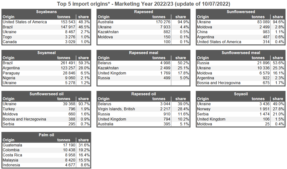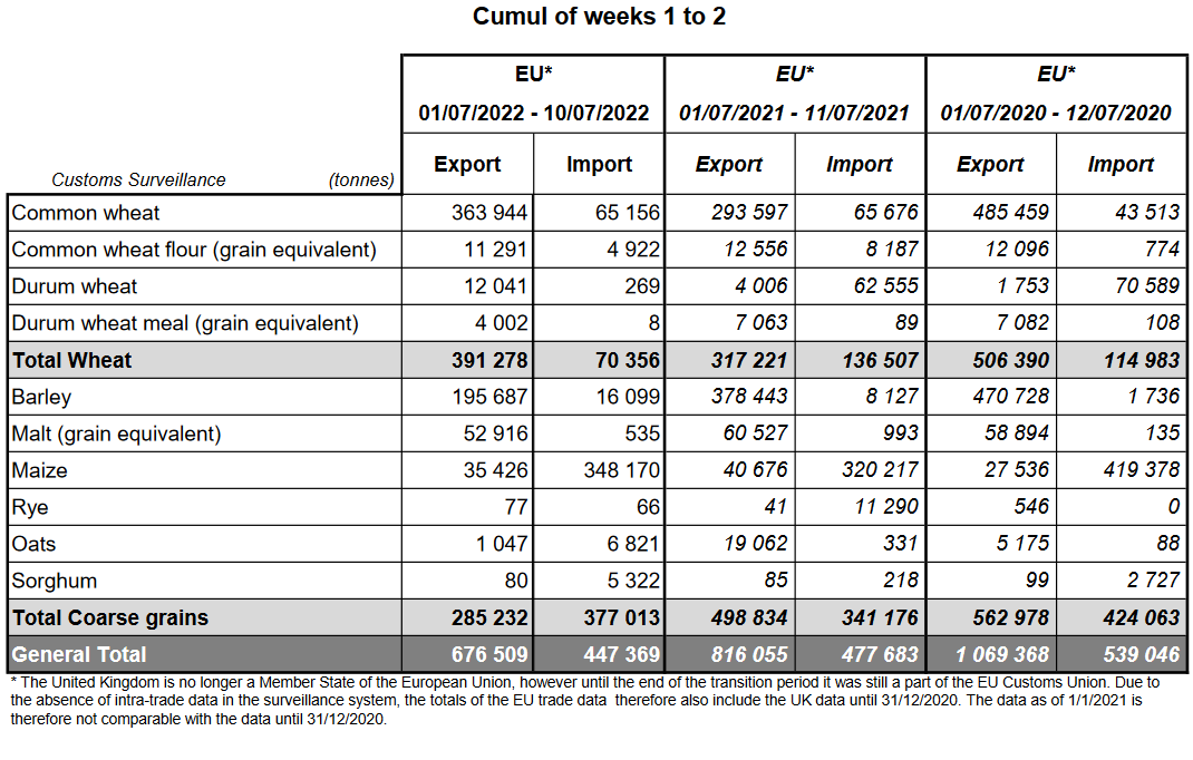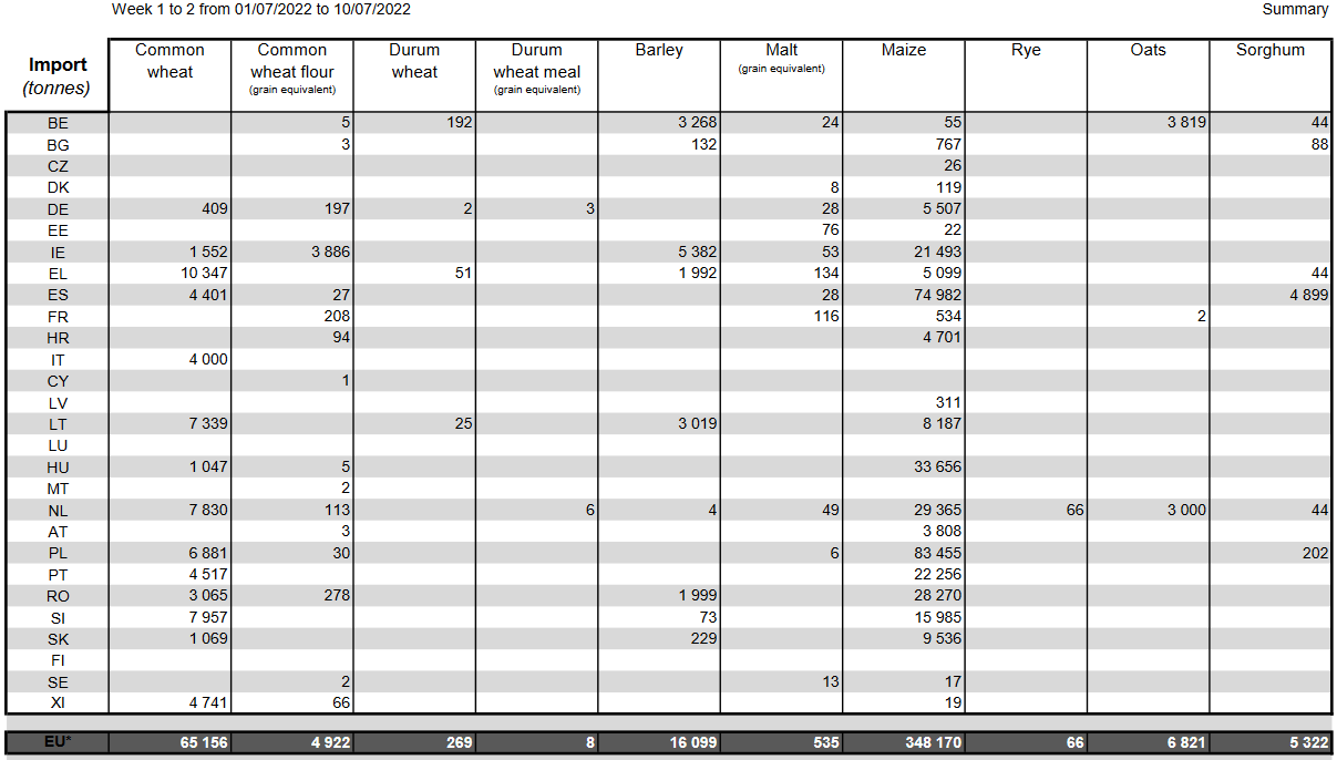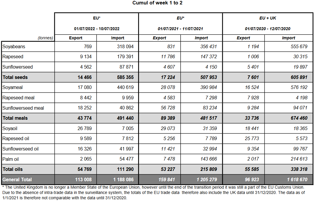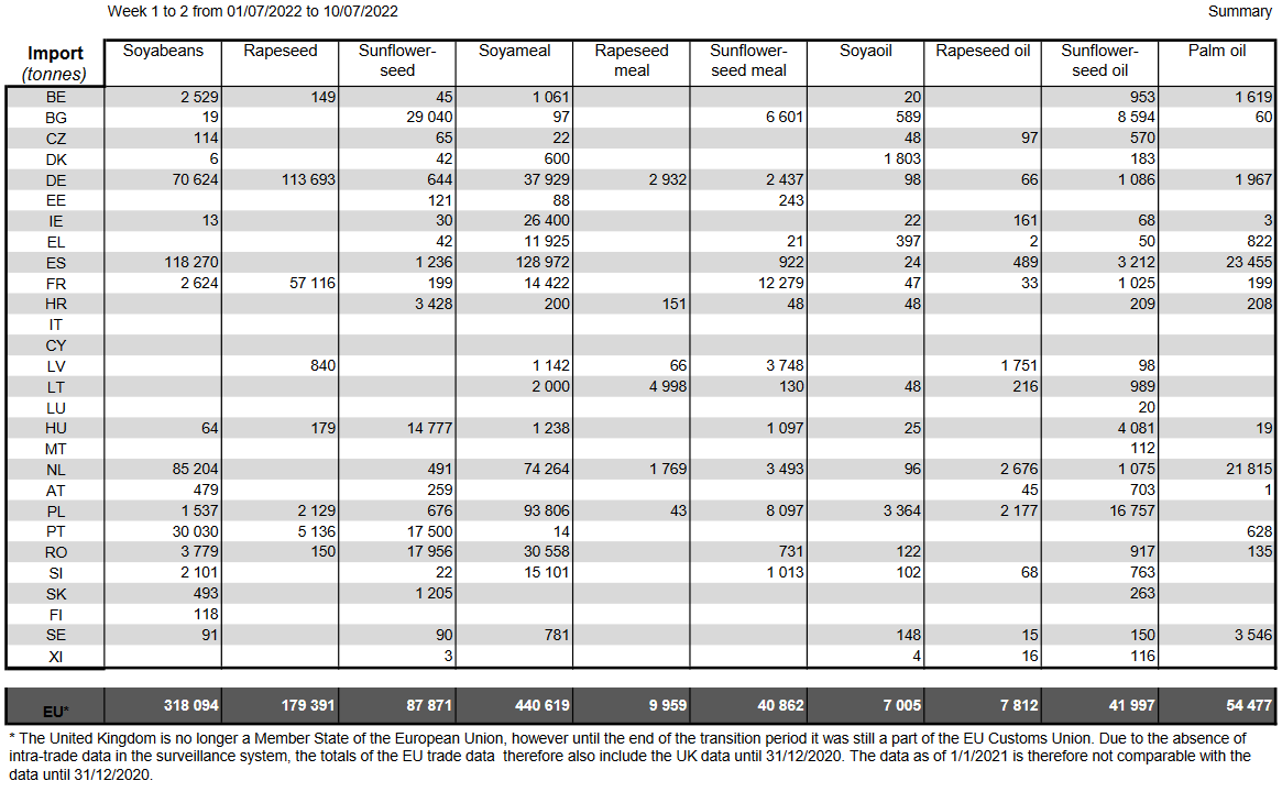 ЕС. Импорт - экспорт зерновых, масличных, растительного масла, шрота. Оперативные данные на 10.07.2022