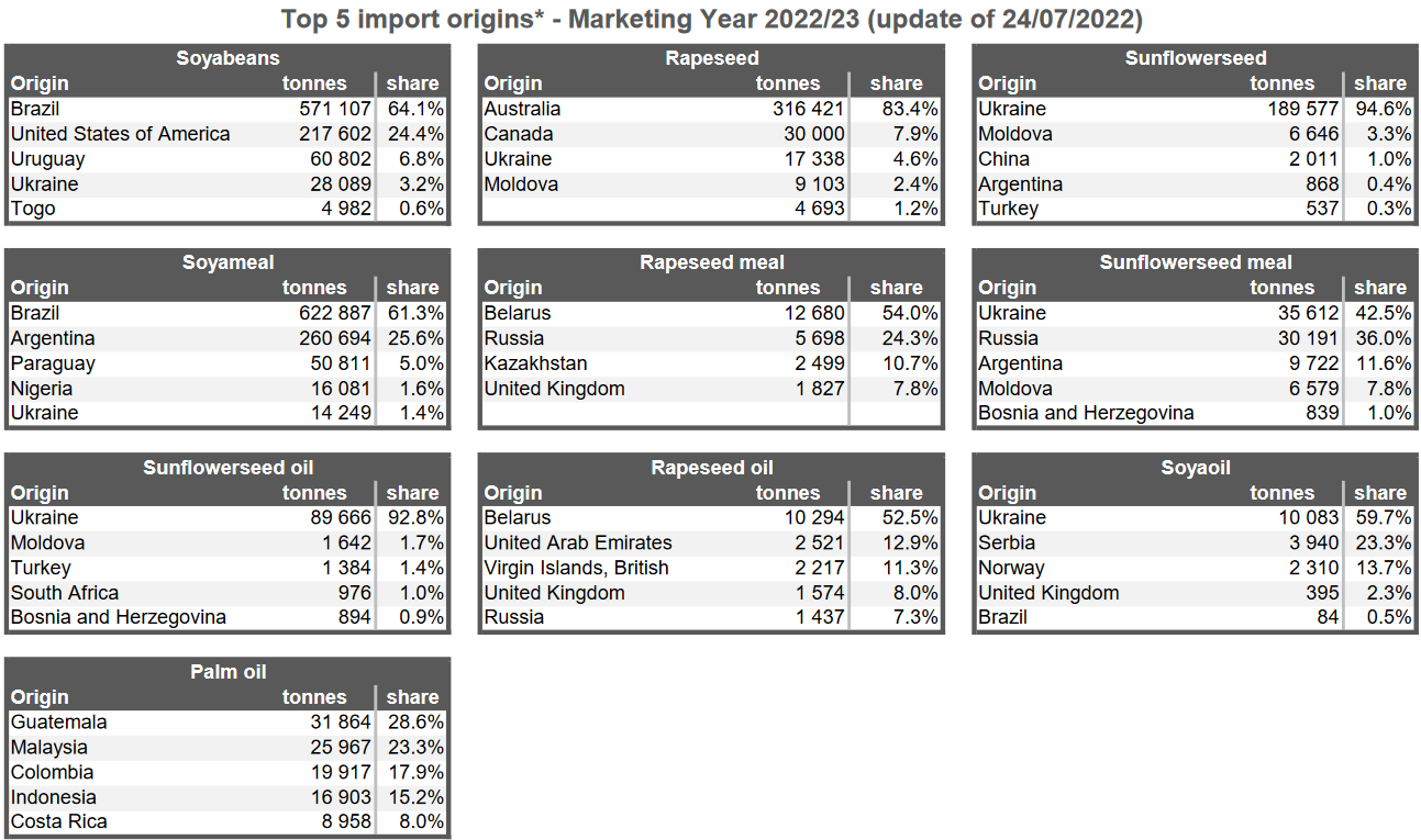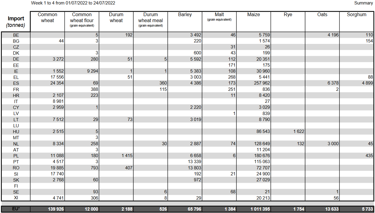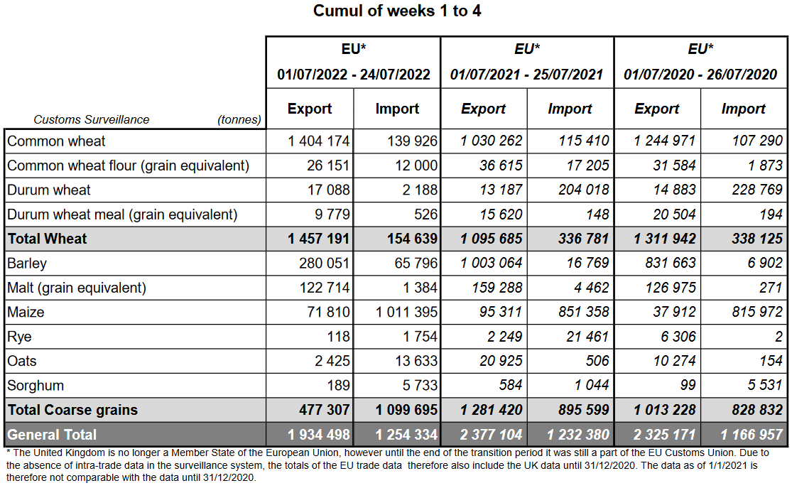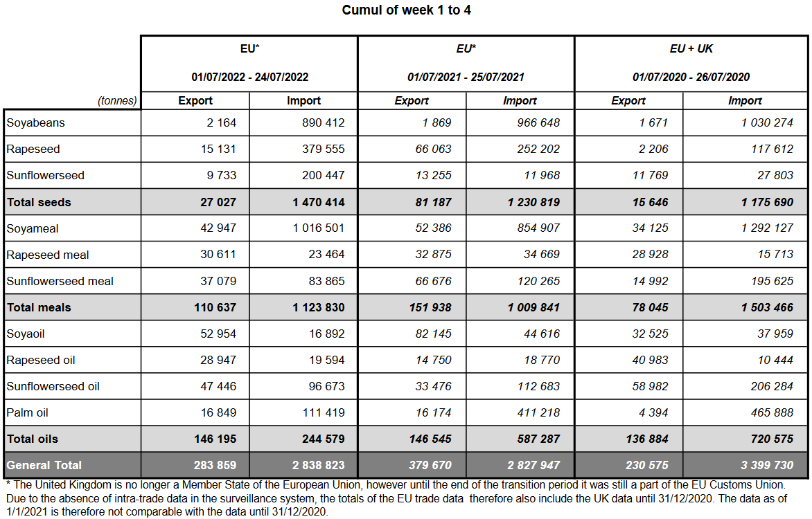 21.07.22 ЕС. Импорт - экспорт зерновых, масличных, растительного масла, шрота. Оперативные данные на 10.07.2022