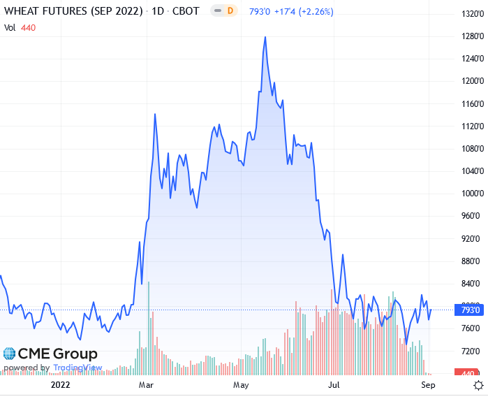 Индекс мировых цен продовольственного агентства ООН в августе снизился пятый месяц подряд после рекордных максимумов, достигнутых ранее в этом году, поскольку возобновление экспорта зерна из украинских портов способствовало улучшению перспектив предложения.