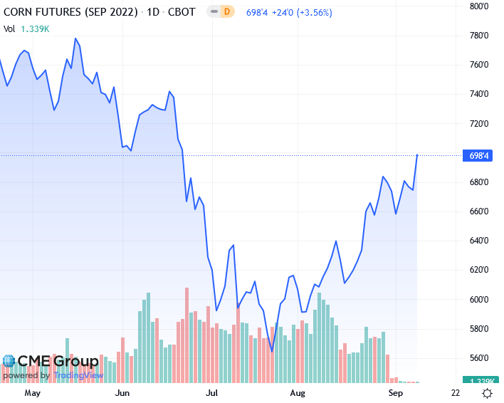 Декабрьские фьючерсы на кукурузу на Чикагской товарной бирже выросли на 16-1/2 цента до $6,85 за бушель после удержания технической поддержки на уровне 100-дневной скользящей средней. Контракты выросли на 2,9% за неделю, что является третьим недельным приростом подряд, так как опасения по поводу снижения перспектив доходности подняли рынок.