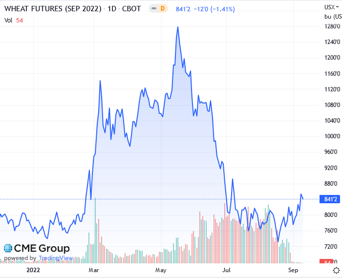 Фьючерсы на пшеницу на Чикагской товарной бирже закрылись снижением в понедельник, рынок откатился от двухмесячного максимума, достигнутого ранее на сессии, сообщили аналитики. Ежемесячный отчет Министерства сельского хозяйства США не содержит серьезных шоков для рынка, считают аналитики. Министерство сельского хозяйства США прогнозирует конечные запасы пшеницы в США на 2022/23 год на уровне 610 млн бушелей, что не изменилось по сравнению с прошлым месяцем и ниже оценок аналитиков в 618 млн бушелей. Мировые конечные запасы пшеницы увеличились до 268,57 млн тонн по сравнению с оценками аналитиков в 268,10 млн тонн. Декабрьские контракты CBOT на мягкую красную озимую пшеницу упали на 10-3/4 цента до $8,58-3/4 за бушель. Ранее самый активный контракт вырос до 8,78 доллара, что является самой высокой ценой с 11 июля.