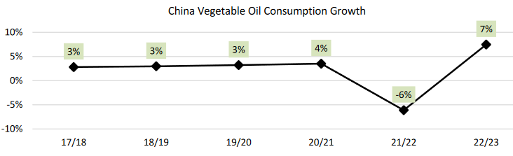 Ожидается, что в следующем маркетинговом году (2022/23) импорт и потребление растительного масла восстановятся. Хотя рост потребления в годовом исчислении в 2022/23 году кажется резким, фактический рост к прогнозу на 2020/21 год составляет всего 1,0 процента.