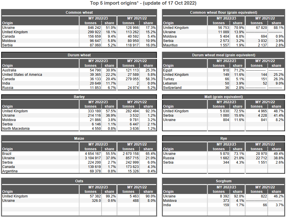 05.10.22 ЕС. Импорт - экспорт зерновых, масличных, растительного масла, шрота. Оперативные данные на 03.10.2022