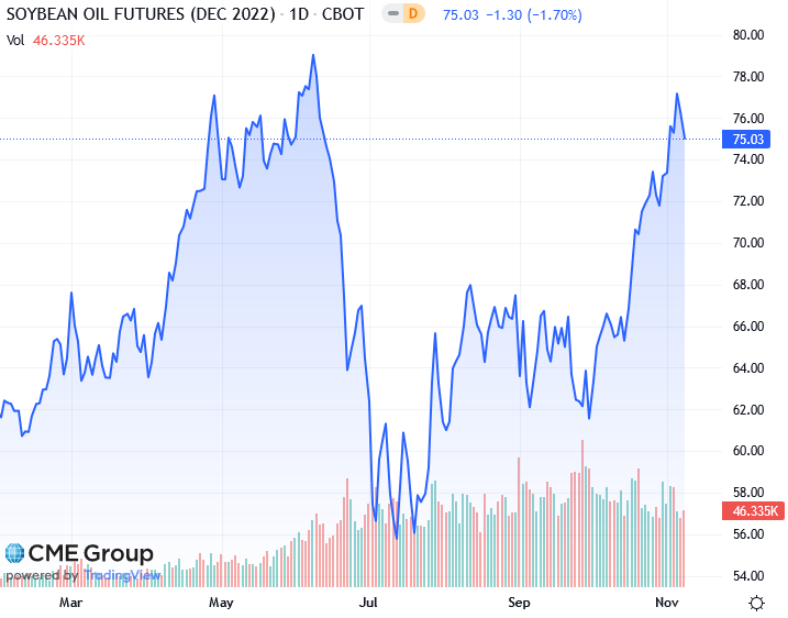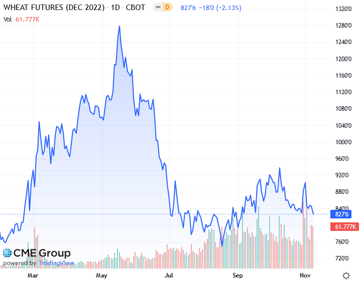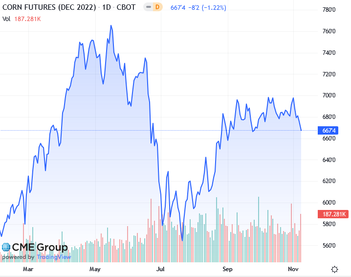 Трейдеры скорректировали позиции в преддверии прогнозов спроса и предложения Министерства сельского хозяйства США (USDA) от 9 ноября. Средние оценки урожайности кукурузы и сои в США среди аналитиков, опрошенных Reuters, не изменились по сравнению с данными Министерства сельского хозяйства США за октябрь. Тем не менее, аналитики ожидают, что Министерство сельского хозяйства США повысит свои оценки конечных запасов пшеницы, кукурузы и сои в США на 2022/23 год по сравнению с прошлым месяцем, показывают опросы.