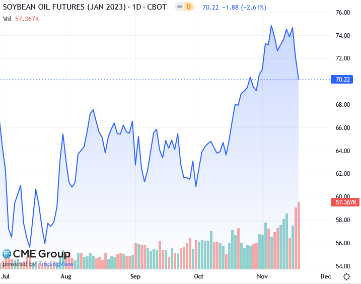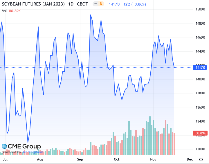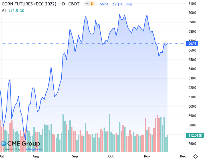 Новости о сделке также оказали давление на кукурузу на ранних этапах, учитывая, что Украина является крупным мировым поставщиком кукурузы, а также пшеницы. Но фьючерсы на кукурузу CBOT сократили потери и выросли после того, как Министерство сельского хозяйства США сообщило, что экспортные продажи кукурузы в США за неделю до 10 ноября составили более 1,1 млн тонн, что близко к верхней границе торговых ожиданий.