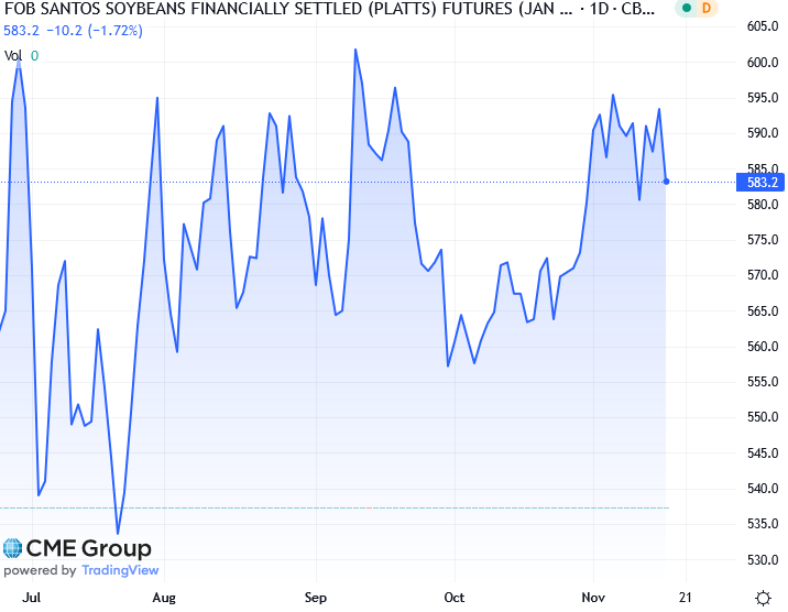 Китай на сегодняшний день является крупнейшим покупателем соевых бобов в мире, и на рынок бобовых также оказало давление слабость соевого масла, основного сырья США для биодизельного топлива.