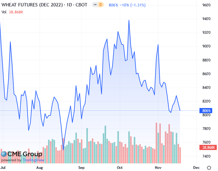 Фьючерсы на пшеницу в США упали до 2,5-месячного минимума в четверг после того, как ООН объявила о продлении коридора для экспорта зерна из Украины.