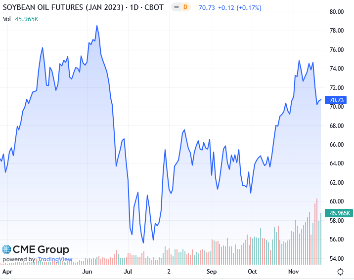 Трейдеры также обеспокоены потенциальной забастовкой железнодорожников в США в конце года после того, как работники крупнейшего профсоюза железнодорожников проголосовали против предварительного контракта, достигнутого в сентябре.