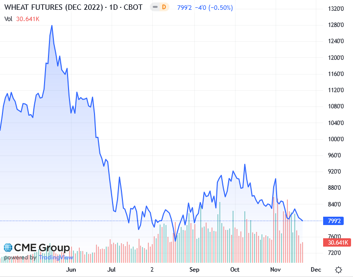 Аналитики отмечают, что цены на пшеницу в России, крупнейшем в мире экспортере зерна, упали на прошлой неделе на фоне продления соглашения по Черному морю, разрешающего поставки украинского зерна.