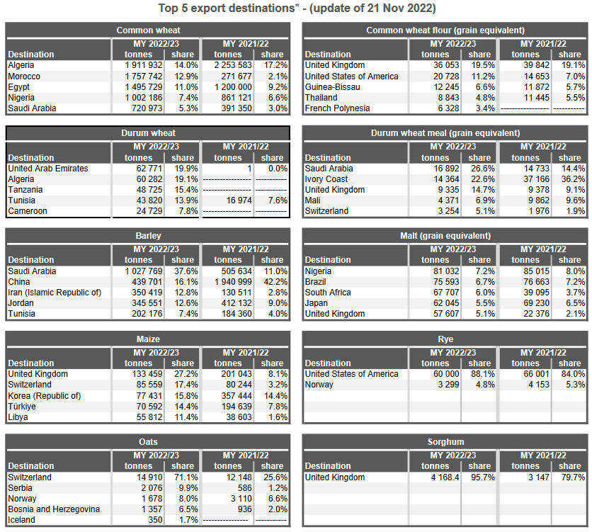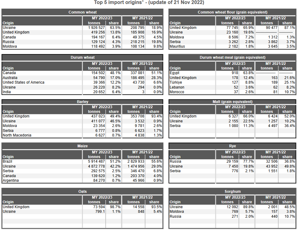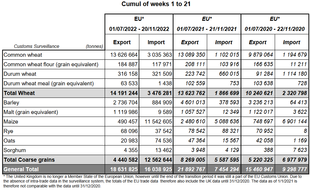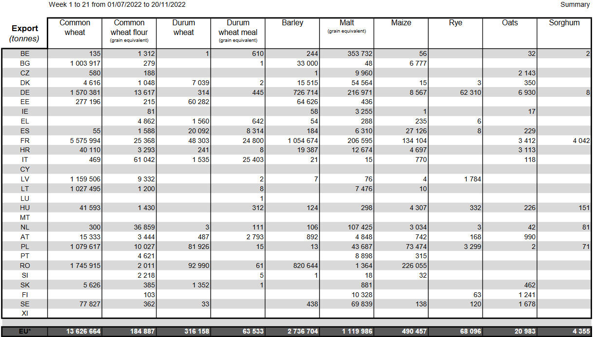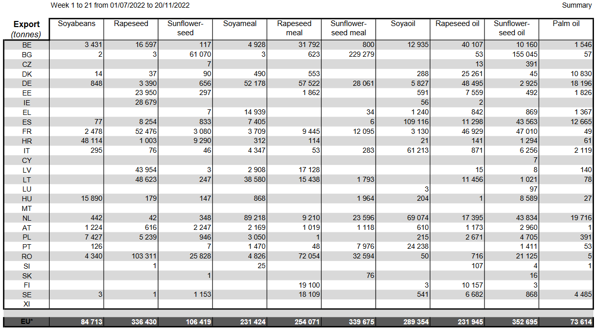 16.11.22 ЕС. Импорт - экспорт зерновых, масличных, растительного масла, шрота. Оперативные данные на 13.11.2022