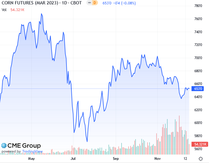 В 10:55 по центральному поясному времени (16:55 по Гринвичу) мартовская мягкая красная озимая пшеница CBOT подешевела на 3-3/4 цента до 7,53-1/2 доллара за бушель, в то время как мартовская кукуруза CBOT подешевела на 1-1/2 цента до 6,52 доллара за бушель.