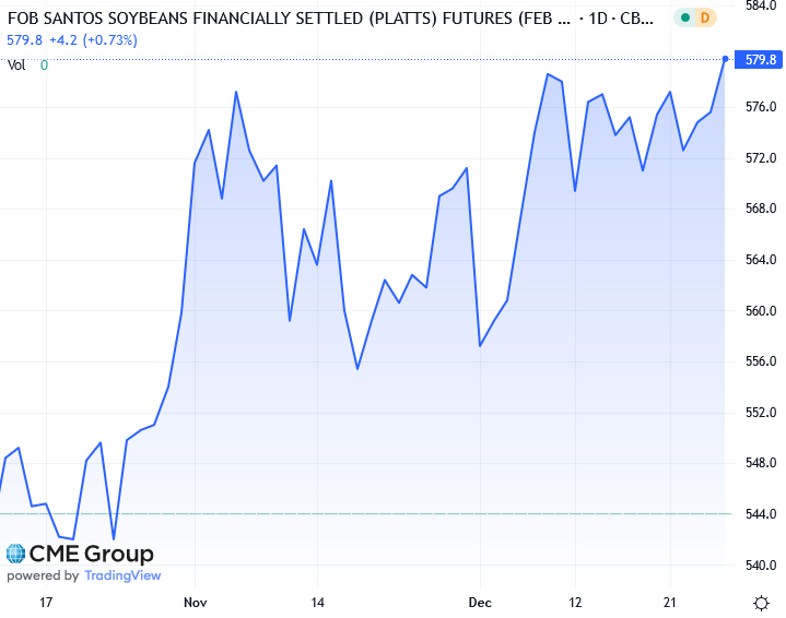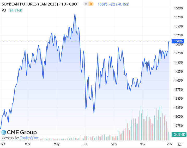 Фьючерсы на сою в Чикаго выросли в четверг после роста в начале дня до самой высокой цены с июня, поскольку инвесторы отслеживали прогнозы столь необходимых дождей для аргентинских культур и отмены Китаем строгих мер по борьбе с COVID-19.