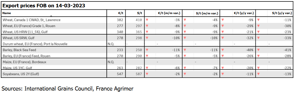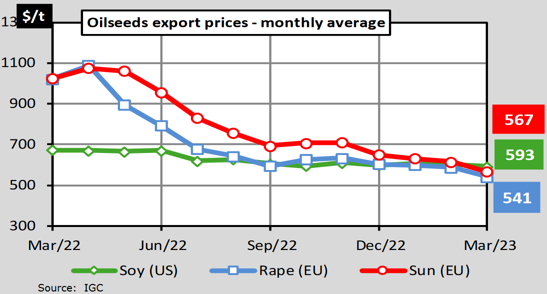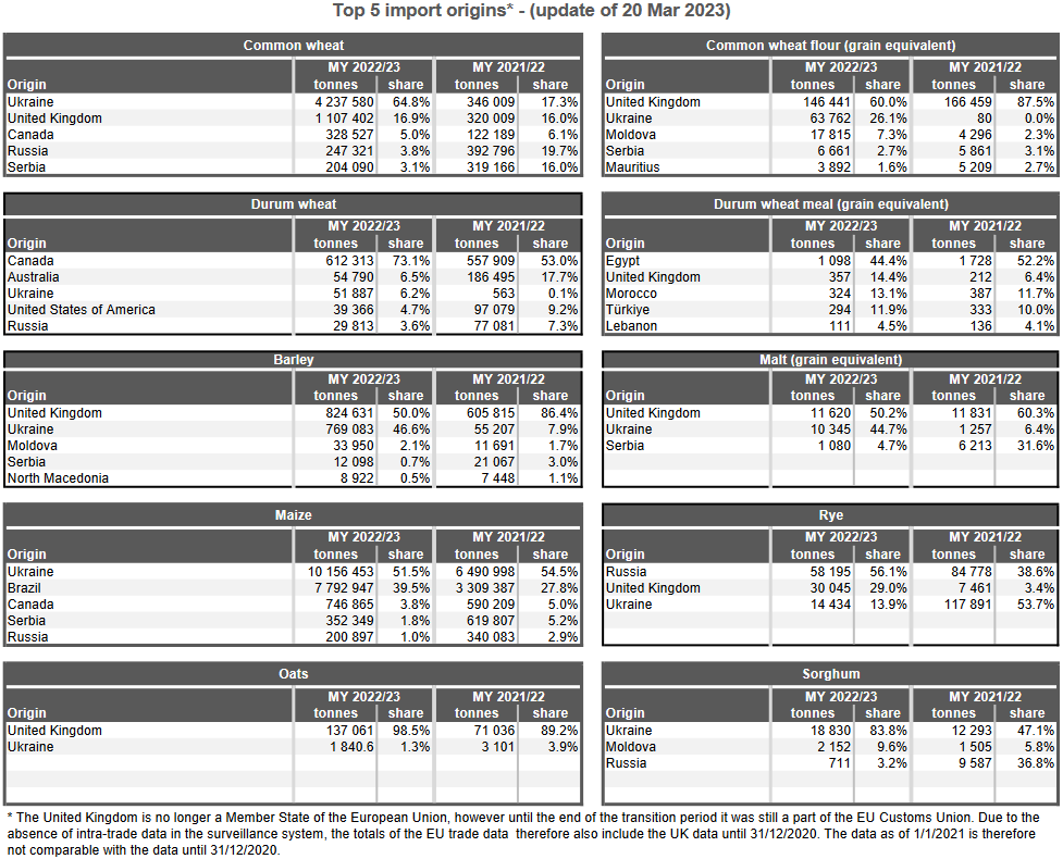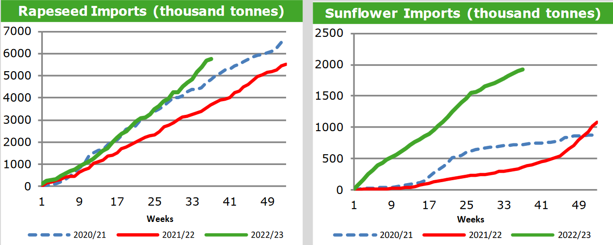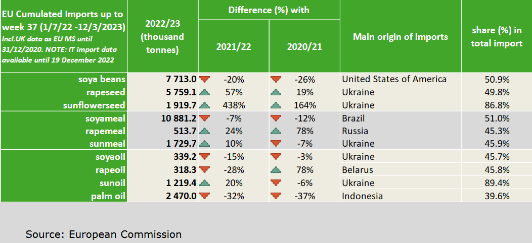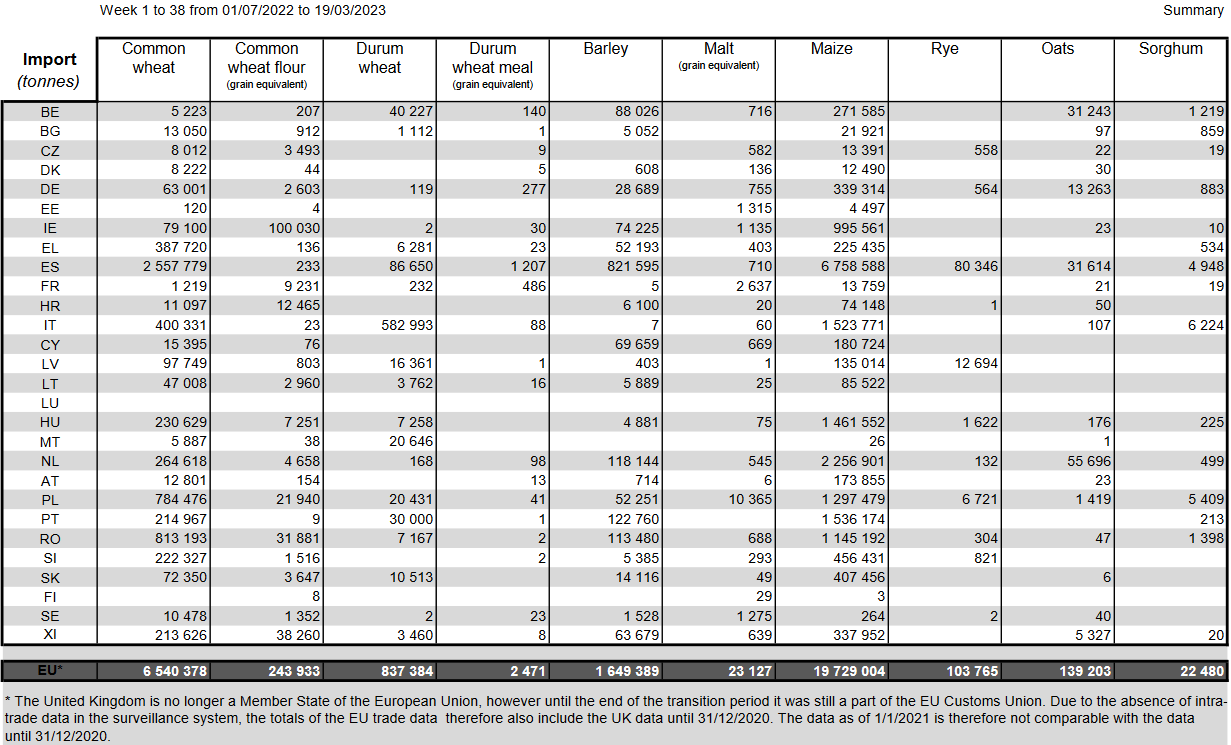 ЕС. Импорт - экспорт зерновых, масличных, растительного масла, шрота. Оперативные данные на 15-19.03.2023