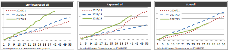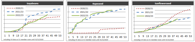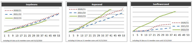 22.03.23 ЕС. Импорт - экспорт зерновых, масличных, растительного масла, шрота. Оперативные данные на 15-19.03.2023
