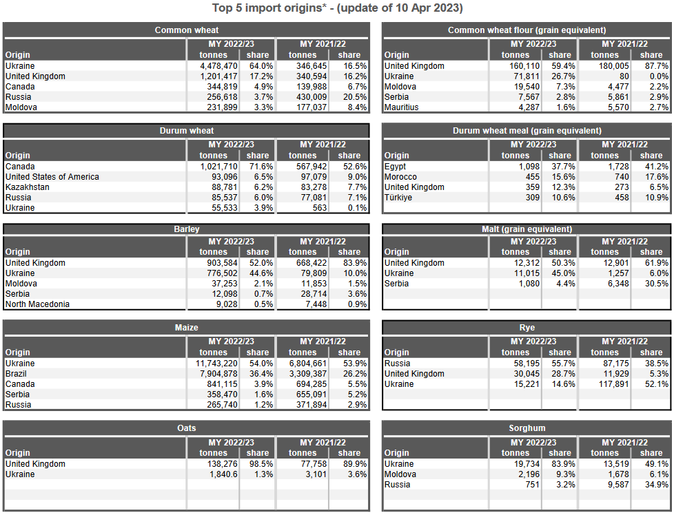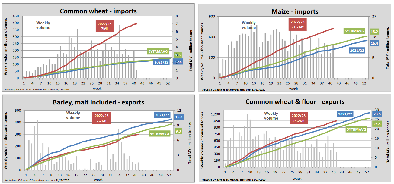 08.02.23 ЕС. Импорт - экспорт зерновых, масличных, растительного масла, шрота. Оперативные данные на 01-05.02.2023